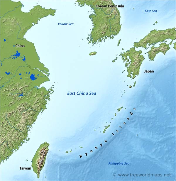 Map of the Yellow Sea and East China Sea (Source: freeworldmaps.net)