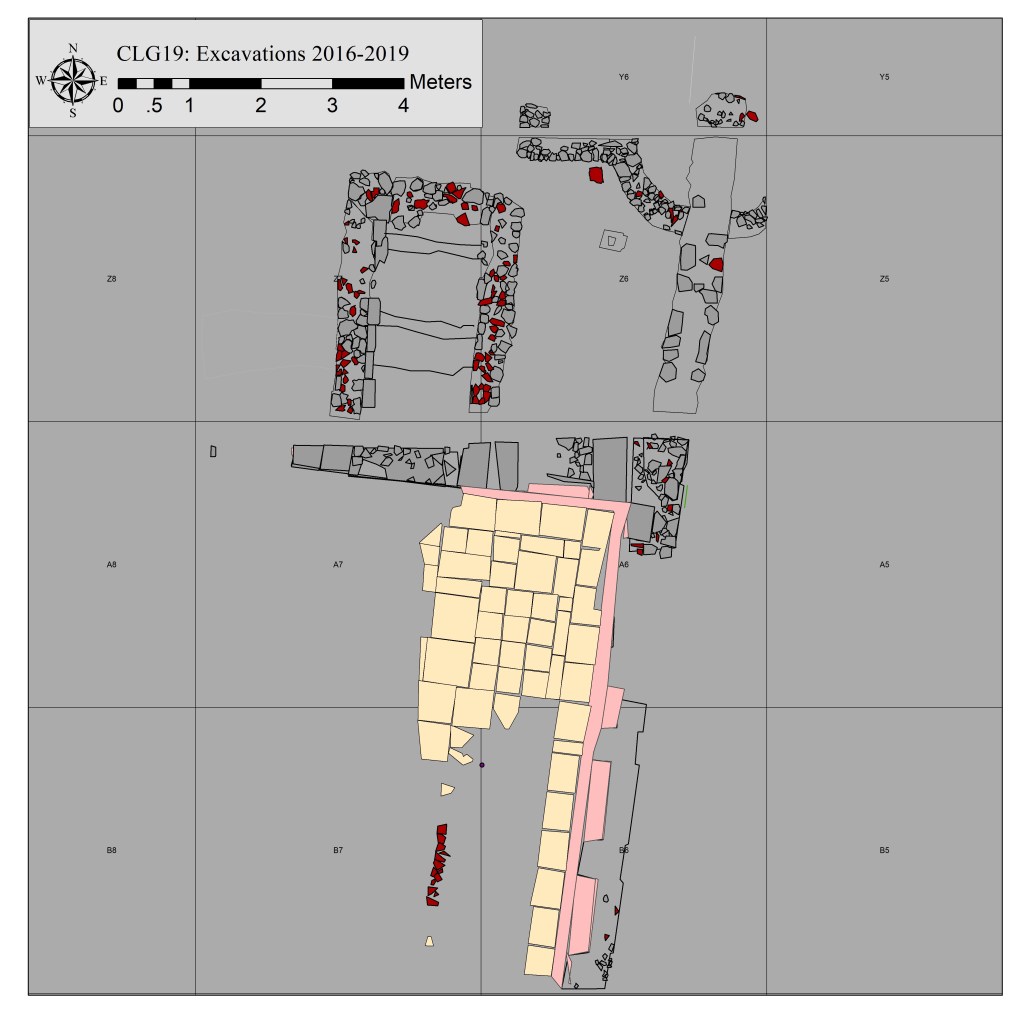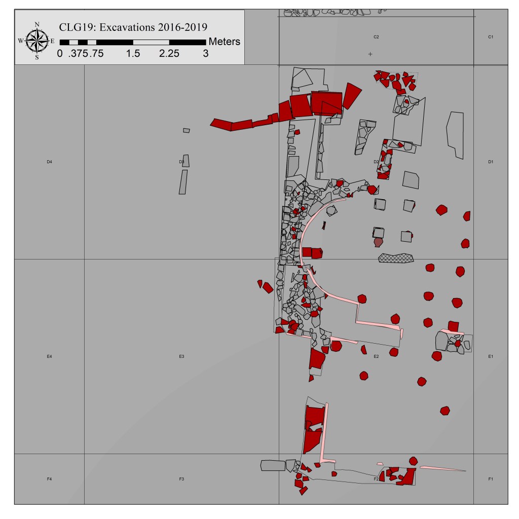 In 2019, we also continued excavation on the lower terrace where we had previously identified three rooms of a bath complex, including an apsidal room with a partially preserved hypocaust floor.