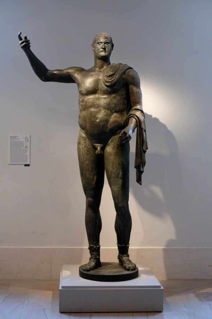 Part of what caught my attention is the stylistic difference between this small art object (not even five centimeters in diameter) and other pieces being made around the same period. Compared to the image of emperors in large public pieces, such as the statue of Trebonianus Gallus at the Metropolitan Museum in New York, this medallion shows a more personal, intimate view of an anonymous individual, one that seems more naturalistic compared to the public aggrandizement of Gallus and other emperors of this period. It is not certain what purpose these medallions might have served (Lutraan 2006, 6).