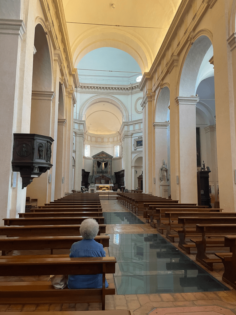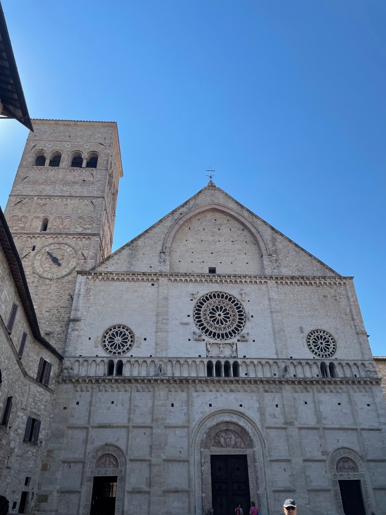 During our class trip to Assisi, our beloved Giampiero led us into the Cattedrale di San Rufino. As we entered the church with our necks bent upward to admire its magnificent architecture and art, Giampiero, naturally, with his resounding “allora,” corrected the object of our awe to where it ought to be directed: a Roman wall. Beneath our feet, long glass panels lined the nave, revealing the remains of a Roman wall upon which the church was built. So, as you are sitting in the pews and praying to the Catholic god and Saint Rufino, obviously you’ll also want to see the Roman walls that lie beneath you, right?
