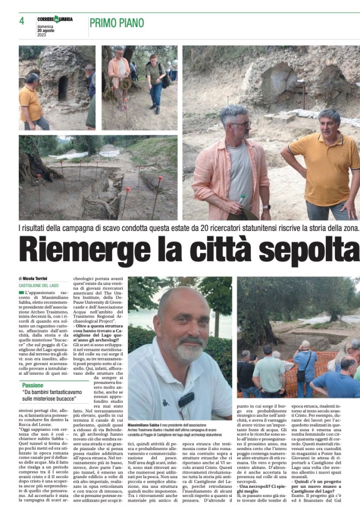 TRAP is grateful for our many local partners in Castiglione del Lago, especially the Archeo Trasimeno Club. We were pleased to see this profile of Club president, Massimiliano Sabba, in Corriere dell’Umbria on 20 August 2023: